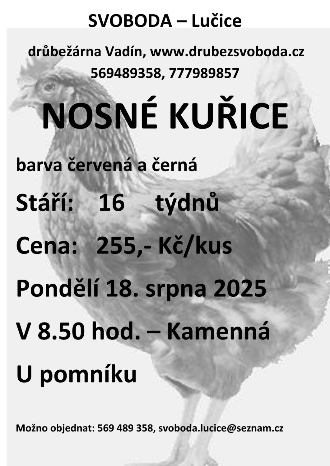 Prodej kuřic (Svoboda – Lučice)